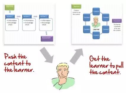 将重心由推动式转向拉回式,你可以分享相同的信息,同时,还可以为学习者创建一个独一无二的学习经历。如果你曾经使用过以拉回式为基础的课程,你向学习者传递信息的方式都是什么呢?点击评论板块,你可以在上面随时分享你的想法。
