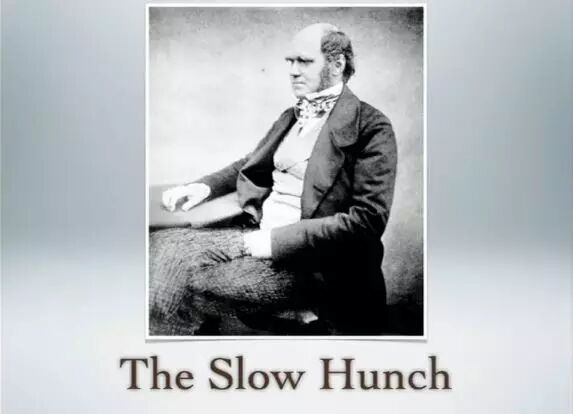 我们已经听过很多灵感闪现的故事,一切像是突然出现的。但事实上,有许多伟大的想法有时在人们的心中长达几十年。达尔文是一个很好的例子。在他的自传里,达尔文讲述了自然选择的产生,一个典型的灵感产生于“我发现了”瞬间的故事。1838年十月份的,他在他的书房里,阅读马尔萨斯的人口论。突然间,自然选择的基本算法在他脑海里浮现,他说:“我终于有一个合理的理论了”。这就是他的自传中描述的。大约十年或二十年前,有个叫霍华德·格鲁伯的学者,他流览了达尔文这一时期的笔记本。达尔文保留下了丰富的笔记,他写下了他的每一点想法,每个小预感。格鲁伯发现,1838年10月 达尔文在阅读马尔萨斯著作并顿悟数月之前,已有了自然选择的充分理论。在某种意义上说,达尔文有了概念,但尚未完全思考透澈。正是有了前面的积累,才有了后来的灵光乍现。实际上,许多伟大的思想都是这样产生的。