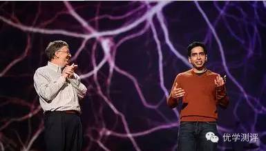 2011年3月,可汗在加州举行的TED大会上发表演讲,全体听众起立鼓掌。比尔?盖茨当场上台,就可汗的项目与之交流。