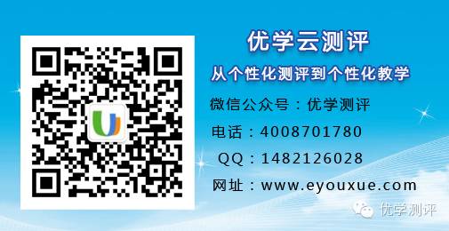 了解最新测评动态,收集更多教育信息,提升教学水平,改善学习效果,增加亲子关系……欢迎点击标题下方优学测评,查看并订阅“优学测评”公众号,或扫文章下方二维码。优学云测评精选最有价值的教育咨询,定期按主题为您推送,节约您的宝贵时间。